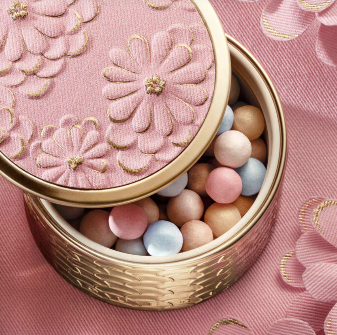 Для коллекции Blooming Denim Дом Guerlain объединился с Nona Source, ключевым игроком в сфере циркулярного дизайна, чтобы украсить культовый футляр Météorites.
