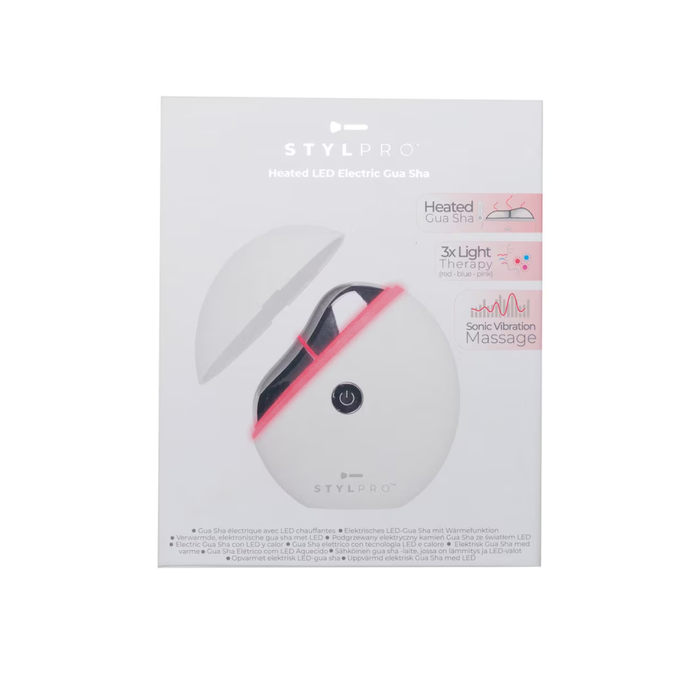 С момента основания в 2011 году компания STYLPRO заслужила репутацию новатора и эксперта в области технологий. Эта электрическая гуаша с подогревом и светодиодной подсветкой выводит классический инструмент на новый уровень благодаря теплу, вибрации и световой терапии, позволяя моделировать контуры лица даже в движении. Красный свет стимулирует выработку коллагена и эластина, синий свет борется с бактериями, вызывающими акне, а розовый свет омолаживает кожу.